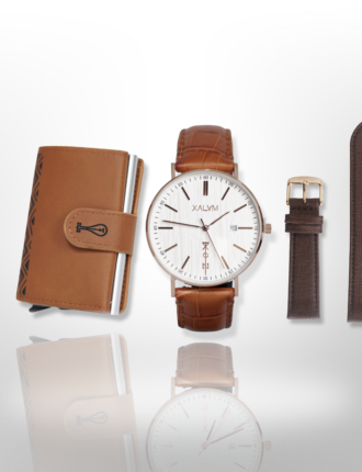 Coffret composé de la montre SIGMA et d'un KALPE Classic Marron. Personnalisation complète du coffret en option.