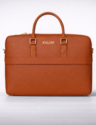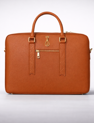 Caractéristiques: Sac d'ordinateur / porte-documents Unisexe en cuir saffiano marron orangé et finitions métalliques Gold. Dimensions: 37×26×6cm Un compartiment principal optimisé pour un rangement facile de votre ordinateur portable, tablette, documents et petits accessoires. Intérieur nebuck doux marron. Porté main ou épaule grâce à sa bandoulière ajustable et amovible. Peut accueillir un ordinateur portable jusqu'à 15 pouces.