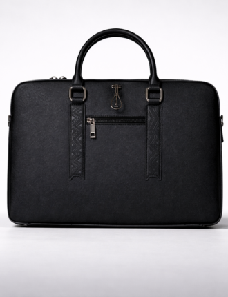 Caractéristiques: Sac d’ordinateur / porte-documents unisexe en cuir noir à texture grainée et finitions métalliques Silver. Dimensions: Taille REGULAR: 39x27x9cm Taille XL: 40x28x12cm  Peut accueillir un ordinateur portable jusqu’à 16 pouces pour la taille Regular et jusqu'à 17 pouces pour la taille XL. Double compartiment à soufflets spacieux et optimisés pour un rangement facile des documents et petits accessoires. Intérieur nebuck doux noir. Porté main ou épaule grâce à sa bandoulière ajustable et amovible. Personnalisation de l'accroche-sac en acier inoxydable en option.