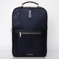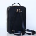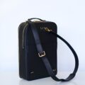 Sac d’ordinateur à dos / porte-documents unisexe en cuir saffiano noir et finitions métalliques Gold. Dimensions: 39x27x9cm Double compartiment à soufflets spacieux et optimisés pour un rangement facile de votre ordinateur portable, tablette, documents et petits accessoires. Intérieur nebuck doux noir. Porté main, à dos ou en bandoulière grâce à ses 3 sangles amovibles. Peut accueillir un ordinateur portable jusqu’à 16 pouces dans son compartiment principal (14 pouces pour la partie interne dédiée à l’ordinateur, 10 pouces pour la partie dédiée à la tablette).