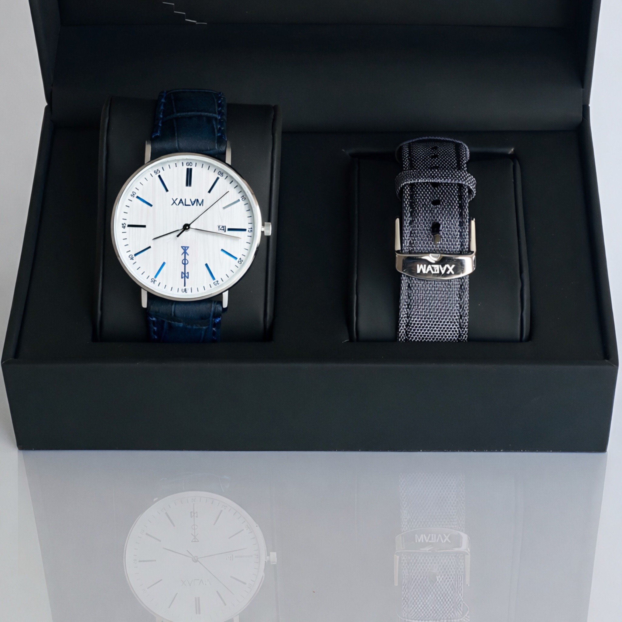 Coffret DUO montre MANKO + Bracelet de rechange en Nylon tissé gris cendre effet Denim.