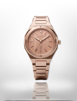 Bois cadran avec afficheur de date: Teck Rosé avec aiguilles phosphorescentes
